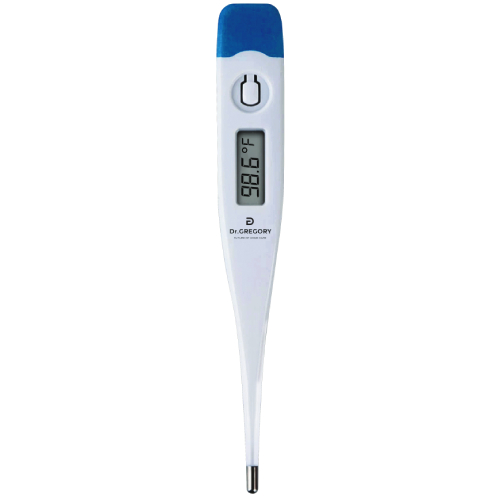 Dr. Gregory Digital Thermometer is for accurate temperature measurement (oral, armpit, or rectal) within 60 seconds. This device is reusable for clinical or home use on people of all ages, including children under 8 years old with adult supervision.