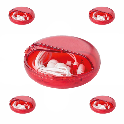 Supplied in a matching coloured round plastic case,