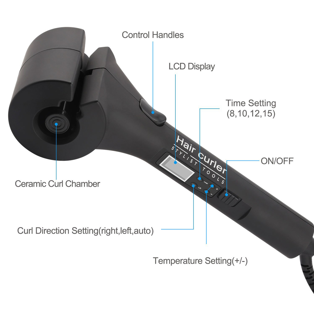 Automatic Hair Curler will let your hair automatically drawn into the ceramic curl chamber where it is softly held and heated from all directions to effortlessly form the curl. This spray full-automatic hair curler can easily be ironed out naturally curly, fashion and attractive, soft wave and other classic styles.